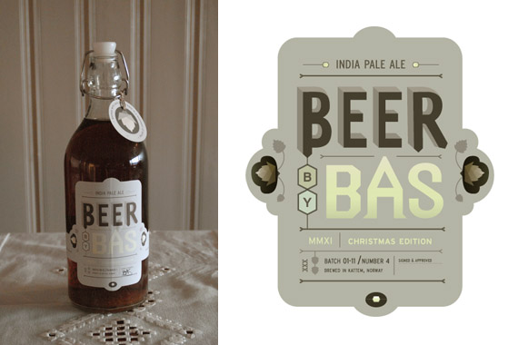 My husband brewed his own beer for christmas and on his 30th birthday in december we went to Mikrobryggeriet and did som beertasting. I surprised him with a custom label for his own «beer by BAS» and the beer found it´s way under the christmas tree for beerloving family and friends.